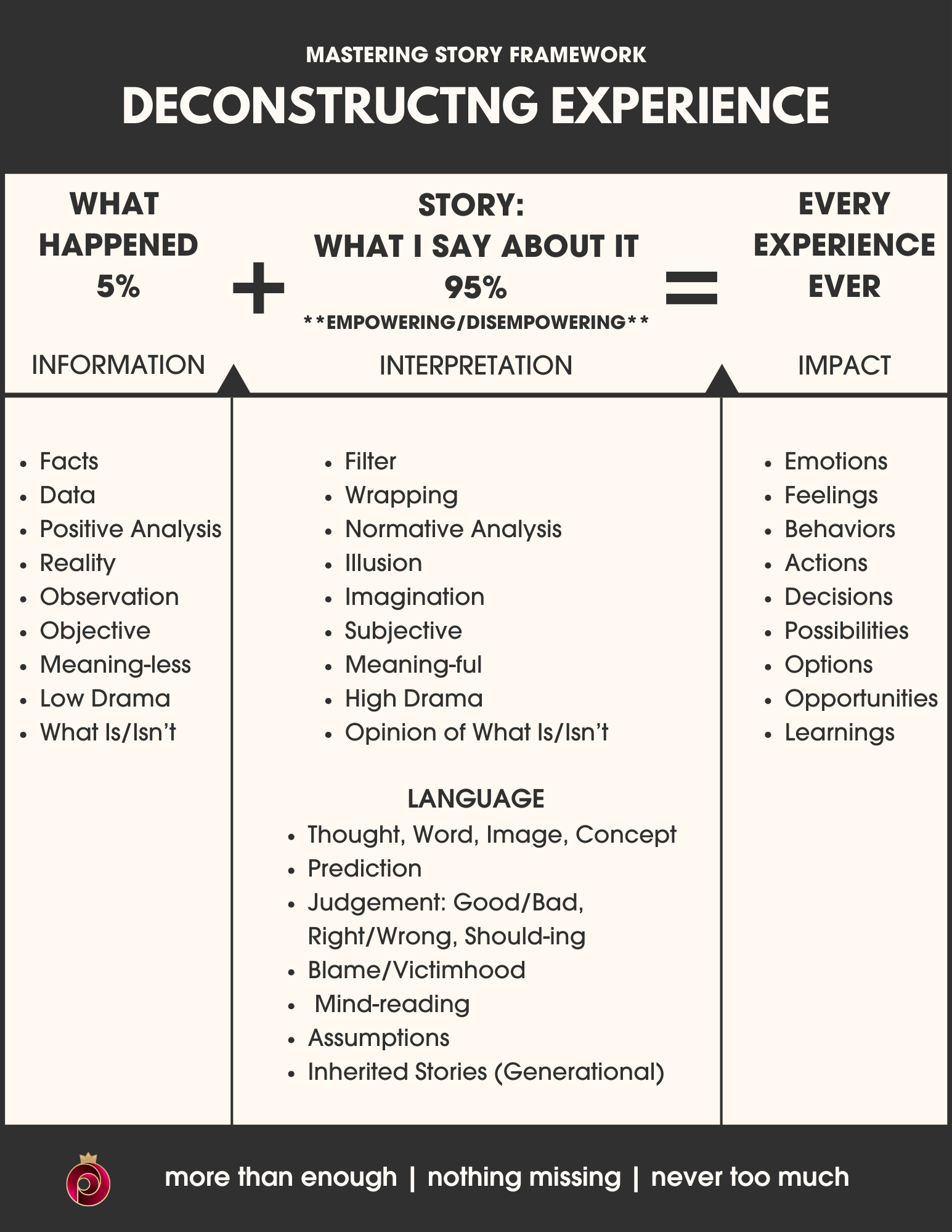 Today we’re showing you how to deconstruct an experience to effectively identify the default stories impacting your life. This is part one of a two-part framework for liberating yourself from the disempowered stories you tell. Next week we’ll give you the rest of the of the framework and show you how to use it to master your stories.