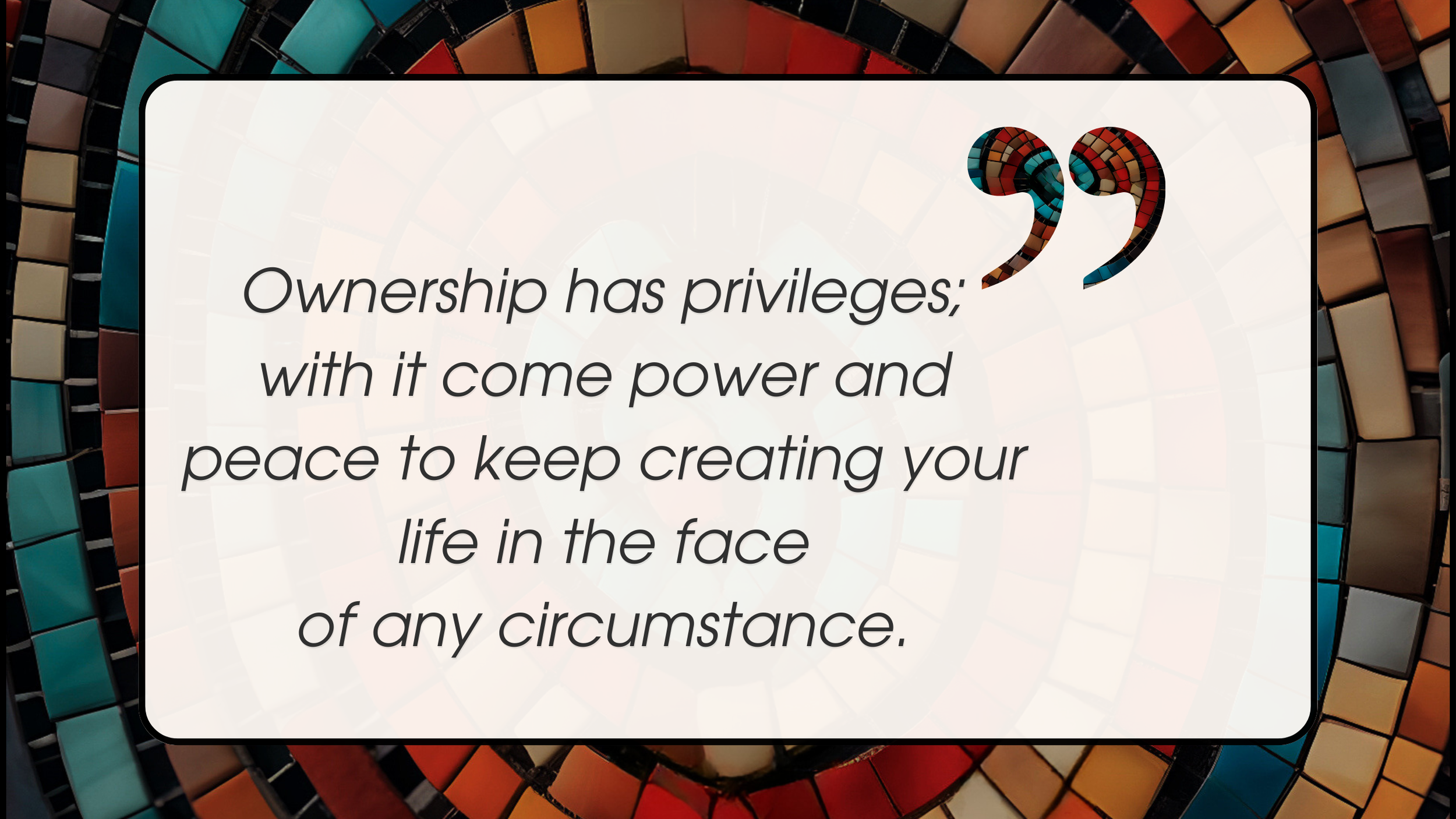 Ownership has privileges; with it come power and peace to keep creating your life in the face of any circumstance.